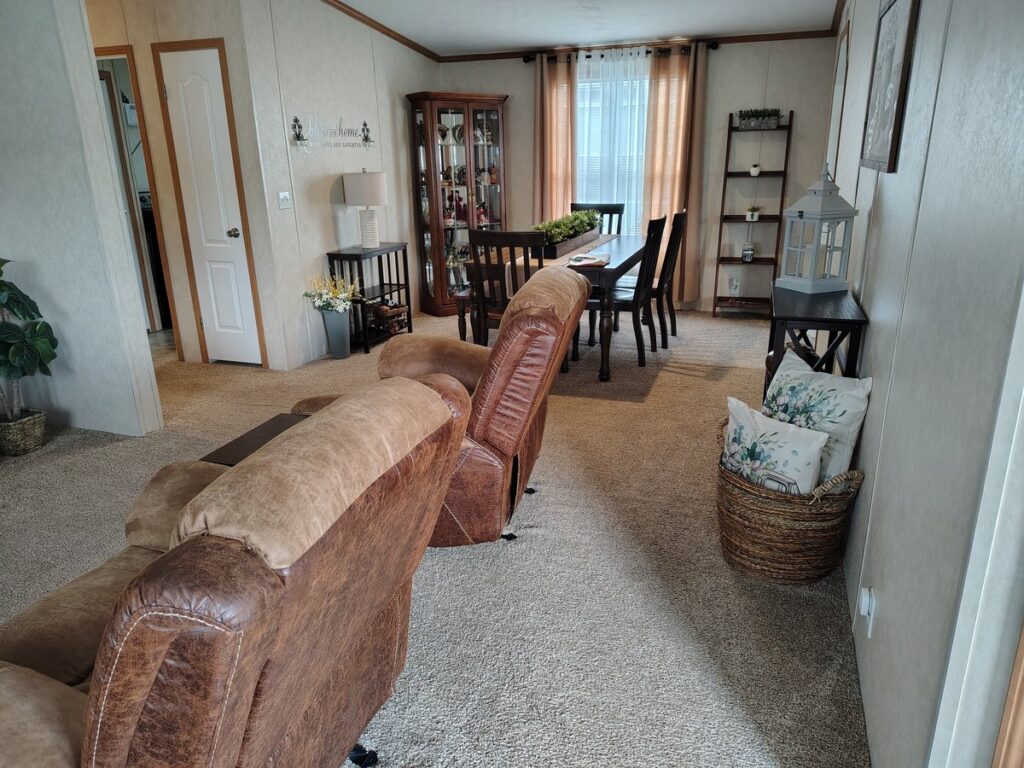 - Neutral carpeting throughout living room, dining room, and bedrooms